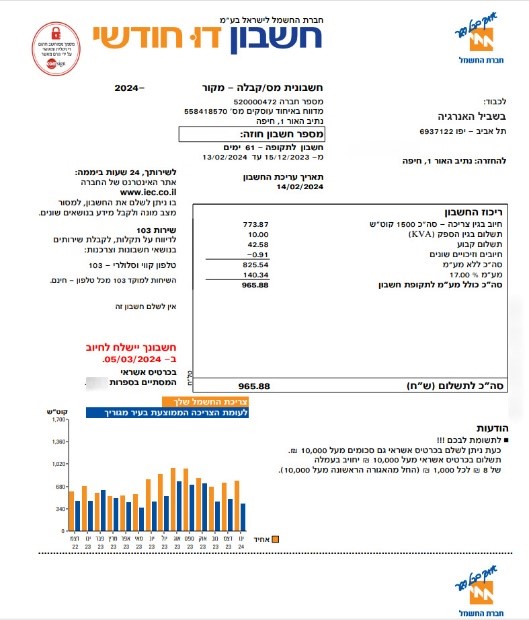 כעת שאלו את התלמידים לגבי חשבון החשמל: האם הם ומשפחתם צרכו מעל או מתחת לממוצע? (ניתן גם להשתמש בחשבון החשמל המצורף בתור דוגמה).