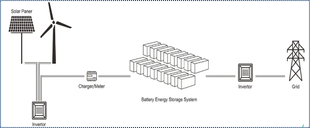 האנרגיה החשמלית העודפת נשמרת כאנרגיה כימית בסוללה חשמלית. בתהליך אגירת האנרגיה נעשה שימוש באנרגיה חשמלית כדי ליצור תהליכים כימיים שבמהלכם זורמים יונים ואלקטרונים כך שנוצר פוטנציאל חשמלי בתוך הסוללה.